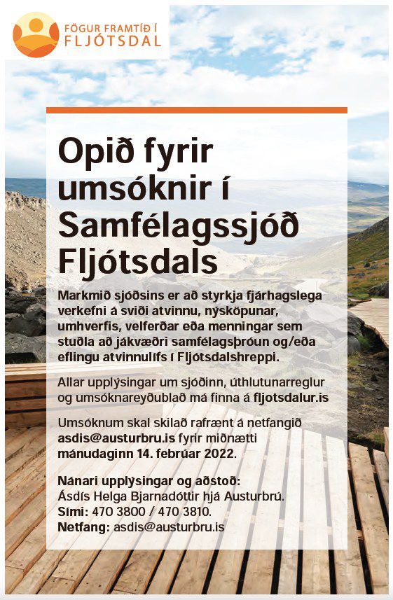 Stjórn Samfélagssjóðs Fljótsdals hefur úthlutað styrkjum árið 2022. Alls fengur 14 verkefni styrk...