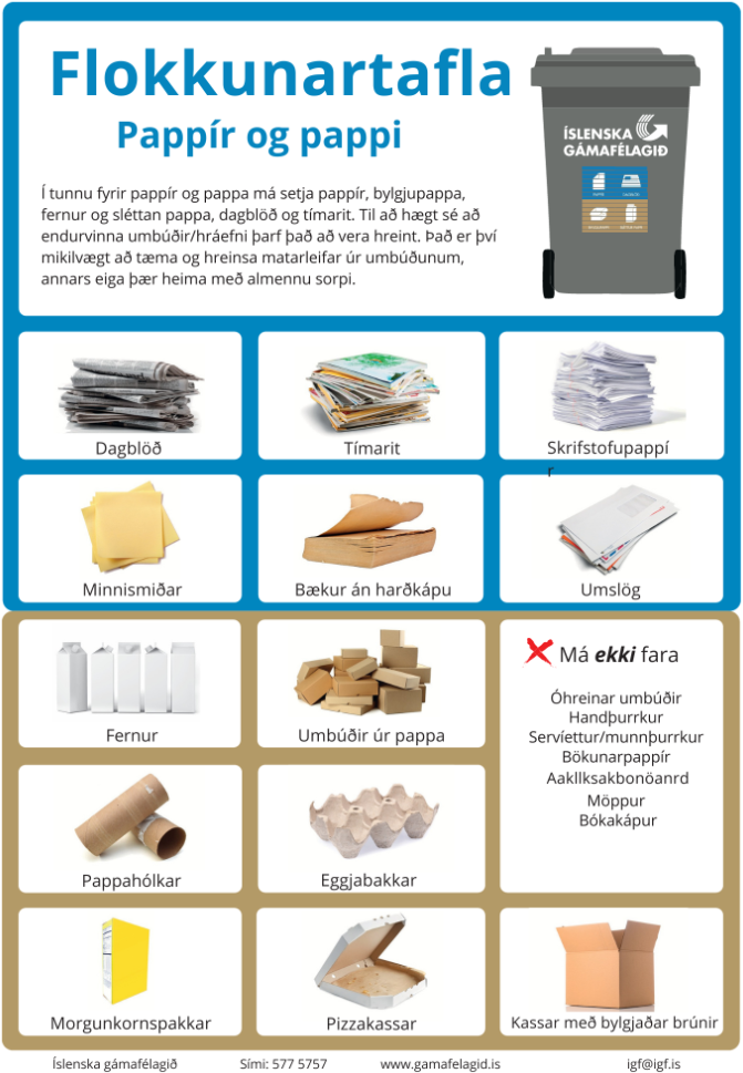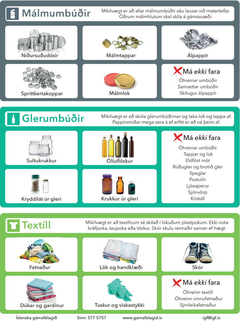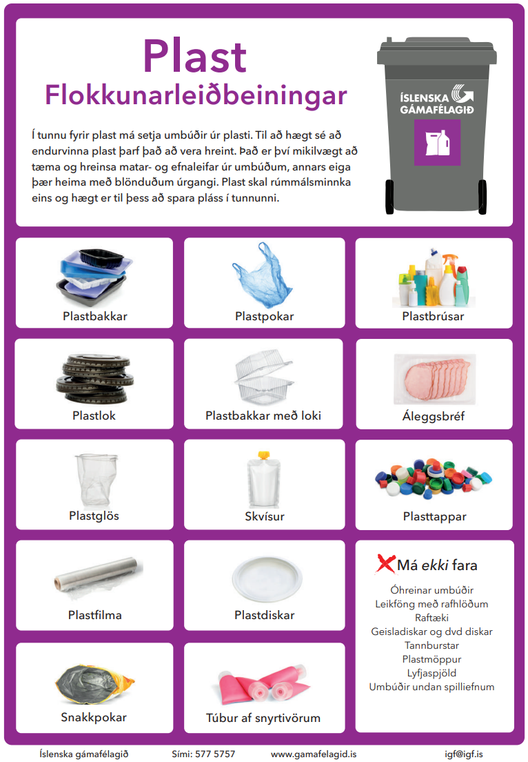 Ítarlegri flokkunarleiðbeiningar má nálgast á heimasíðu Íslenska Gámafélagsins